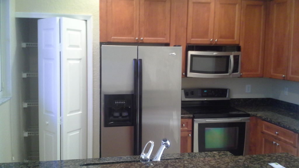 Refrigerator, range, dishwasher, washer, dryer, microwave |